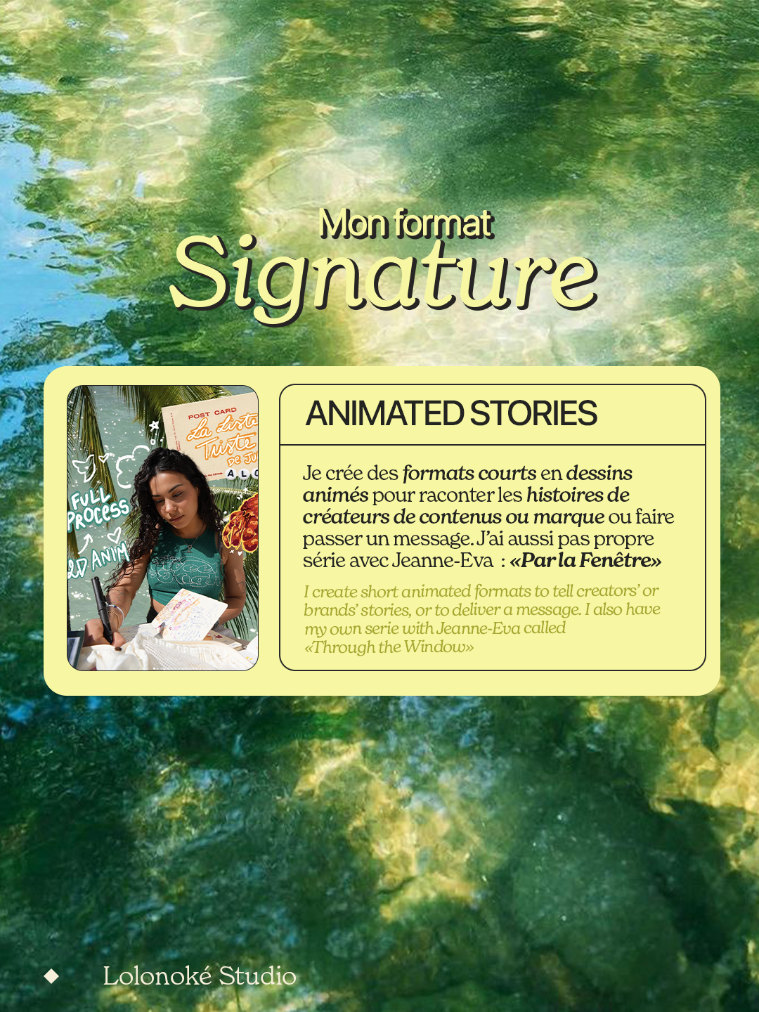 Je donne vie à vos récits à travers des formats animés pensés pour les réseaux sociaux. Des histoires visuelles conçues pour capter l’attention, transmettre un message et renforcer l’impact d’un univers.